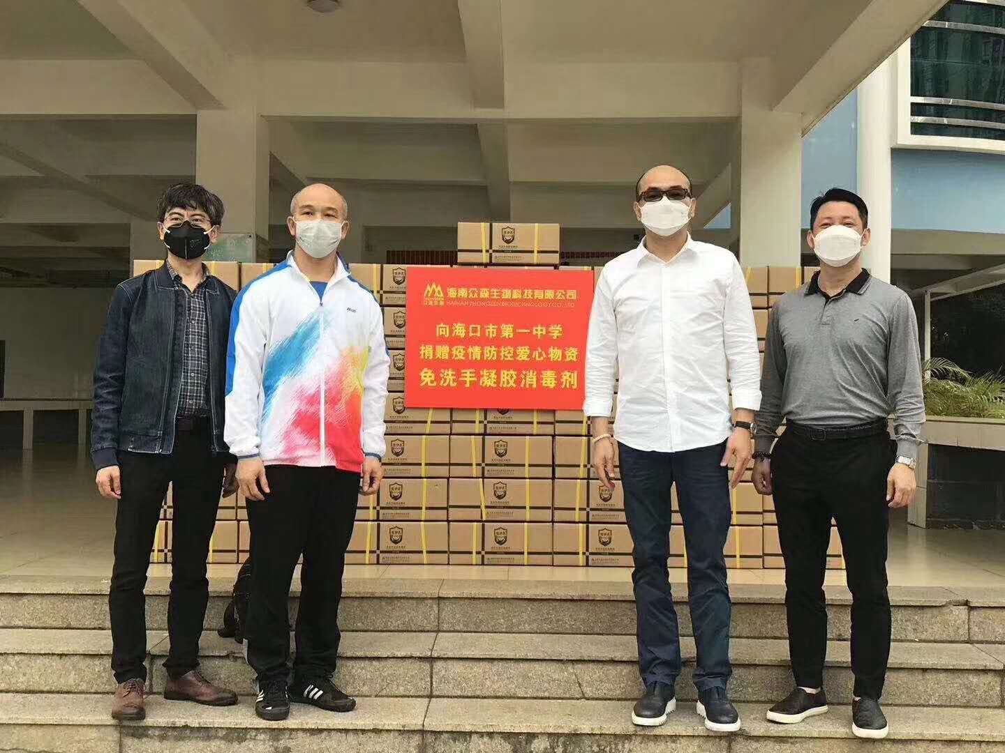 2020年3月25日,海南眾森生物科技有限公司向?谑协h(huán)衛(wèi)局捐贈(zèng)消毒洗手液共計(jì)8000瓶,將由?谑协h(huán)衛(wèi)局調(diào)撥給玉禾田等環(huán)衛(wèi)公司,供工作在一線崗位的環(huán)衛(wèi)工人們?nèi)粘J褂谩?/p>