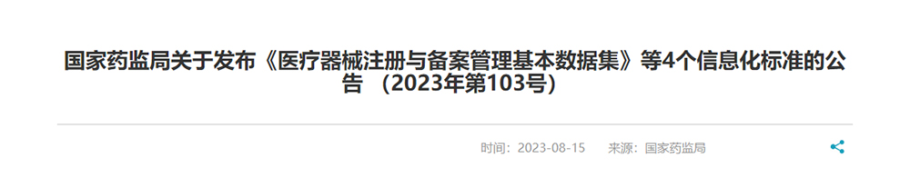國家藥監(jiān)局關(guān)于發(fā)布《醫(yī)療器械注冊與備案管理基本數(shù)據(jù)集》等4個信息化標(biāo)準(zhǔn)的公告